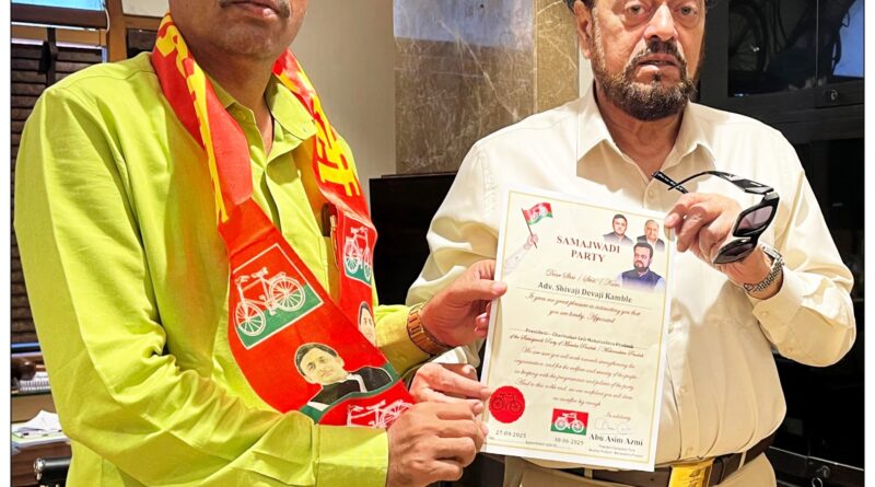 Read Moreसमाजवादी पार्टी चर्मकार सेलच्या प्रदेशाध्यक्षपदी ॲड.शिवाजी कांबळे यांची निवड अंबाजोगाई (प्रतिनिधी) समाजवादी पार्टी महाराष्ट्र प्रदेश कार्यालय, मुंबई येथे प्रदेशाध्यक्ष आमदार