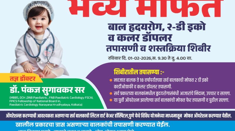Read More*अंबाजोगाईत १ फेब्रुवारी रोजी मोफत बाल हृदयरोग, २-डी इको व कलर डॉपलर तपासणी व शस्त्रक्रिया शिबीर* ——————————————- *घुगे हार्ट ॲण्ड