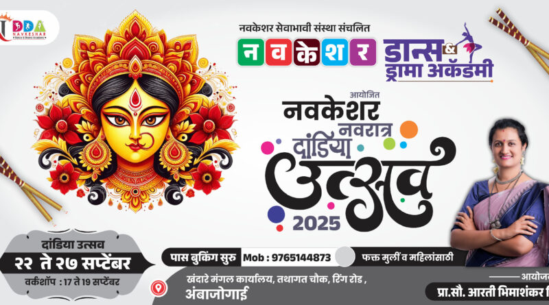Read Moreनवकेशर नवरात्र दांडिया महोत्सव 2025 सूचना उद्या दि 17 सप्टेंबर पासून सायं 5 वाजता दांडिया वर्कशॉपला सुरुवात होणार आहे,,,,,,विरंगुळा